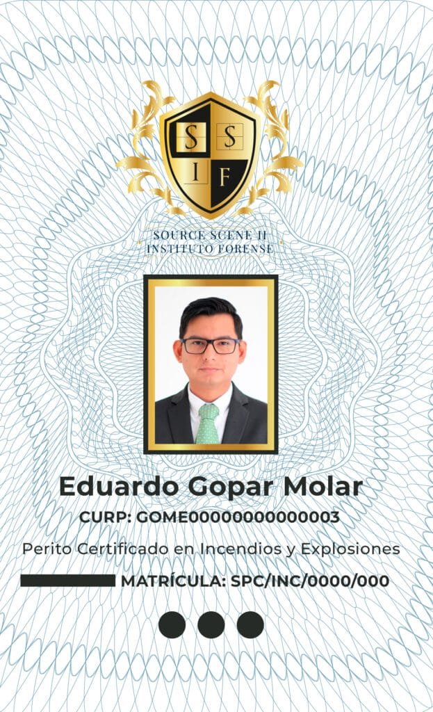 Credencial de Perito con Certificación en Incendios y Explosiones.