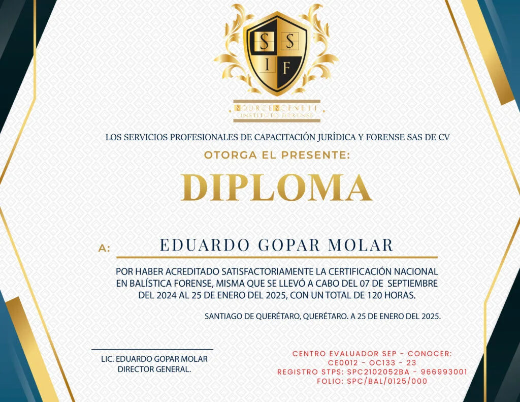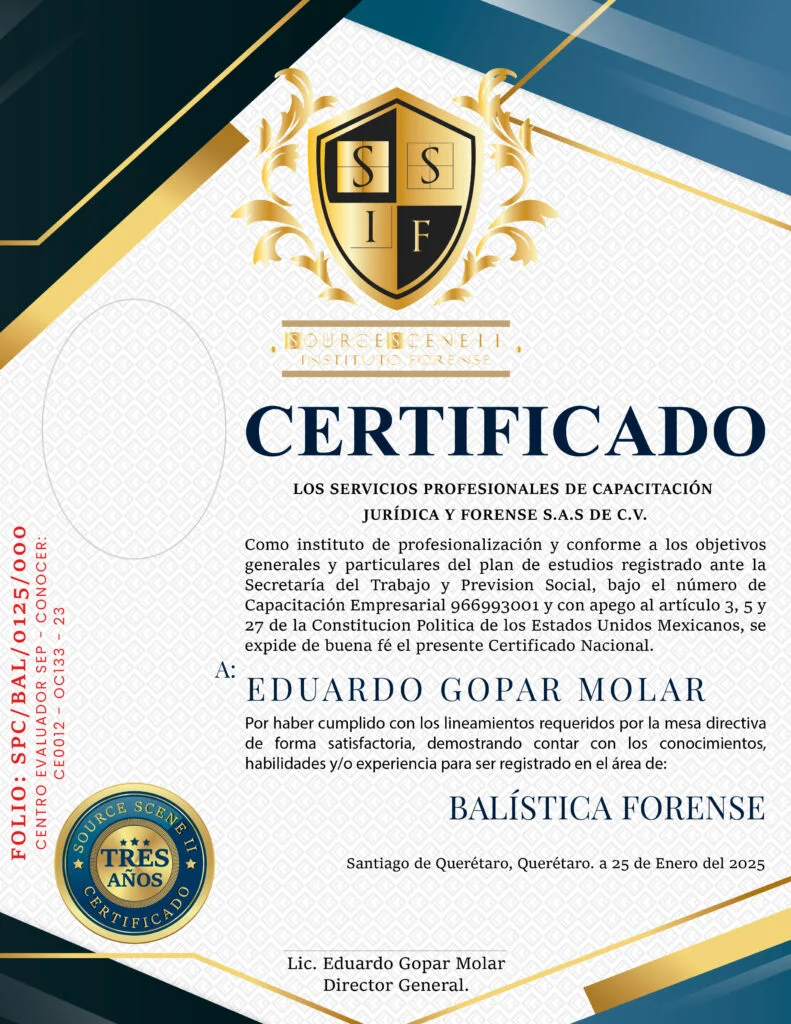 Al concluir satisfactoriamente la Certificación Nacional en Balística Forense, el alumno obtendrá:
